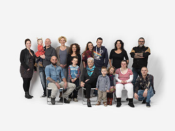 De ondertitel van de expositie “onbekende nabeelden” is onder andere van toepassing op de foto van de familie Verhoeven voor het geboortekaartje van Juul.