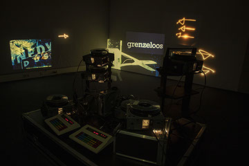 De start van de rondleiding MAn is in de zijruimte, de MAn experience. Dat is dan chronologisch niet helemaal het begin maar wij hebben veel met verschillende vormen van diaprojectie gewerkt en willen graag iets van de apparatuur en de sfeer van zoiets laten zien.
